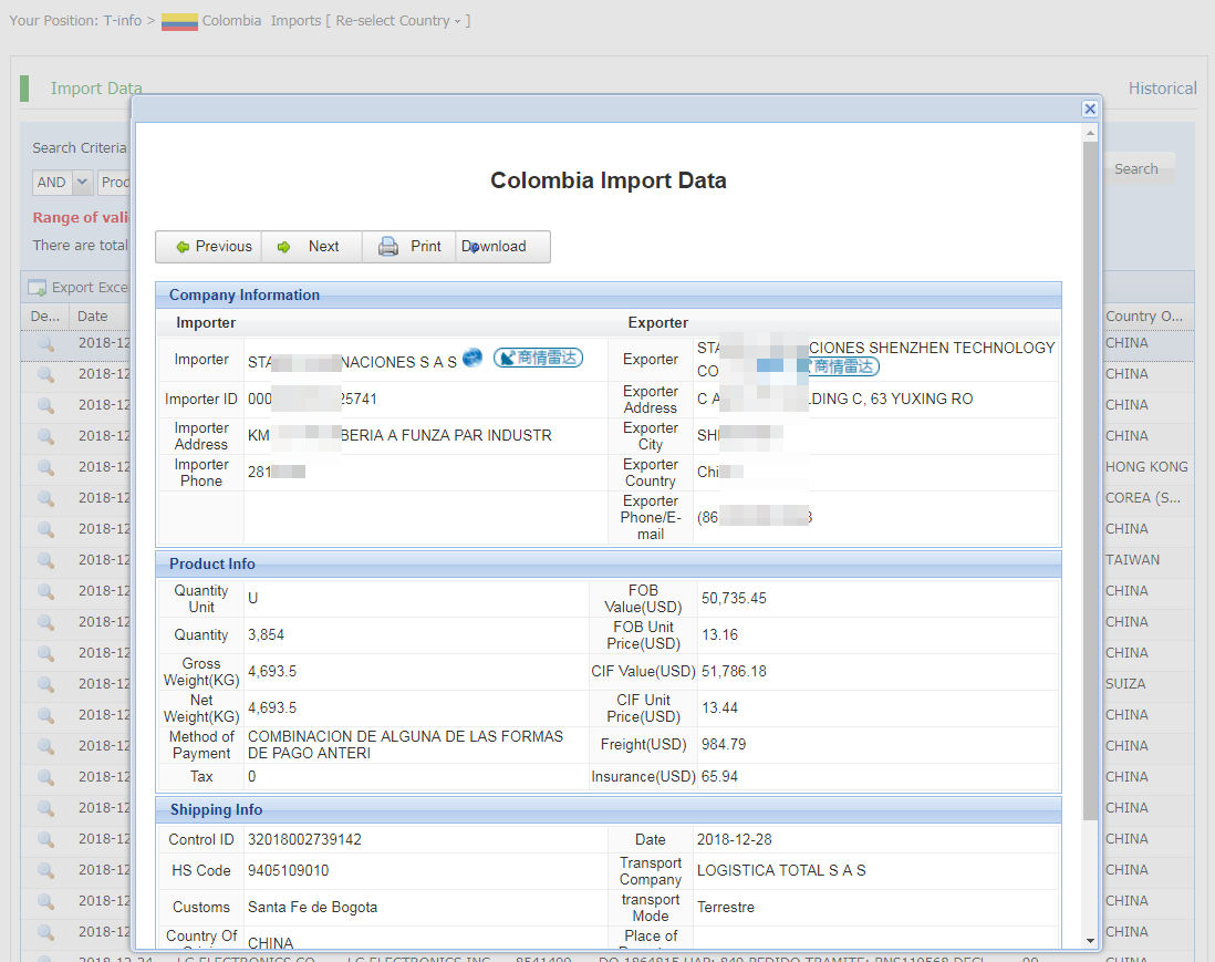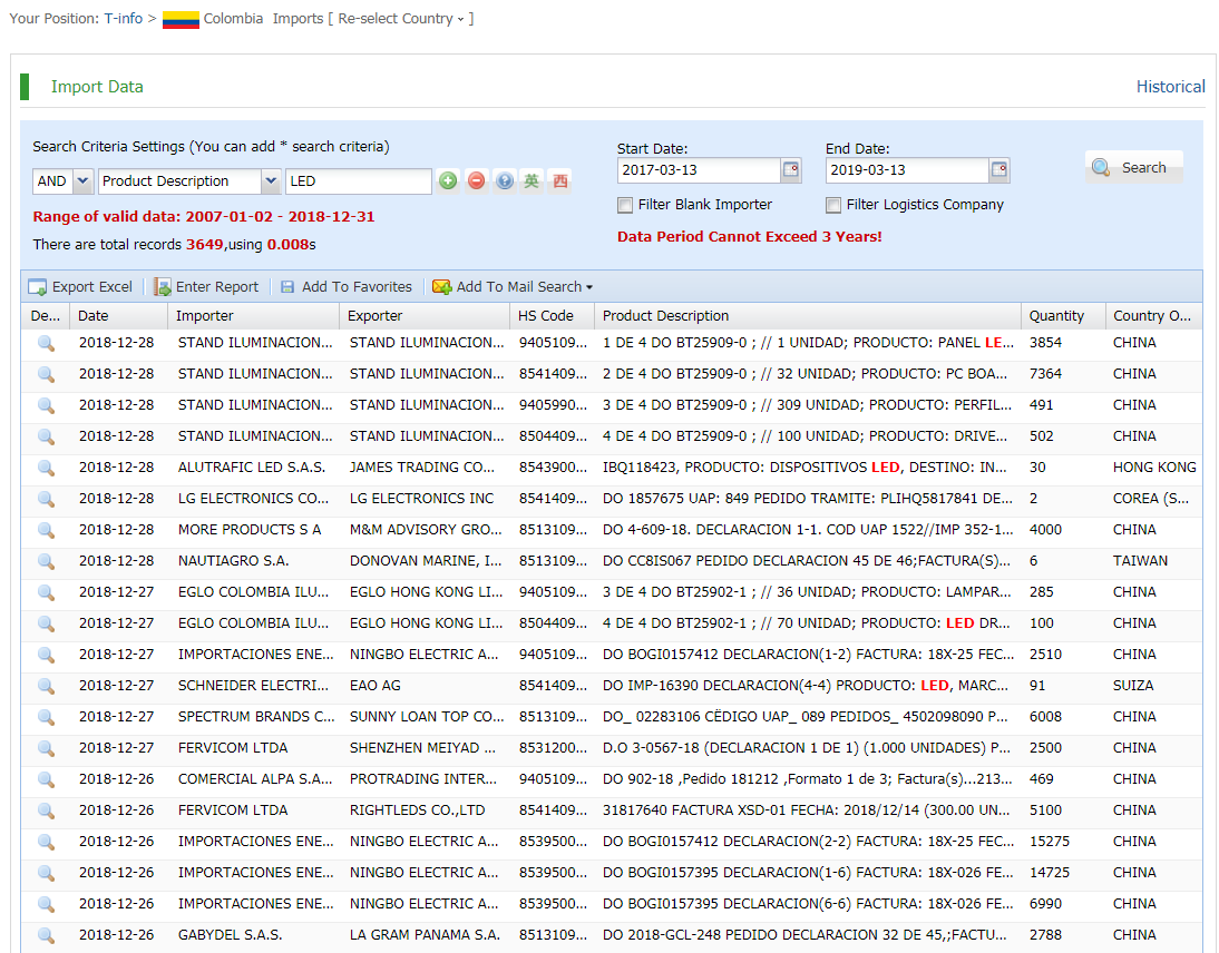 Columbia data actually provided by government customs, Filter by products, shipment dates, ports, country of origin,quantity,price and more.