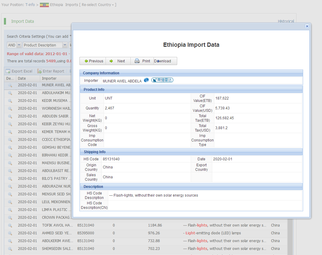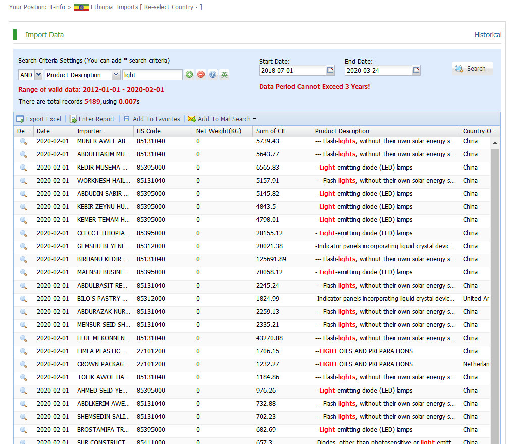 Ethiopia import and export data actually provided by government customs, Filter by products, shipment dates, ports, country of origin,quantity,price and more.