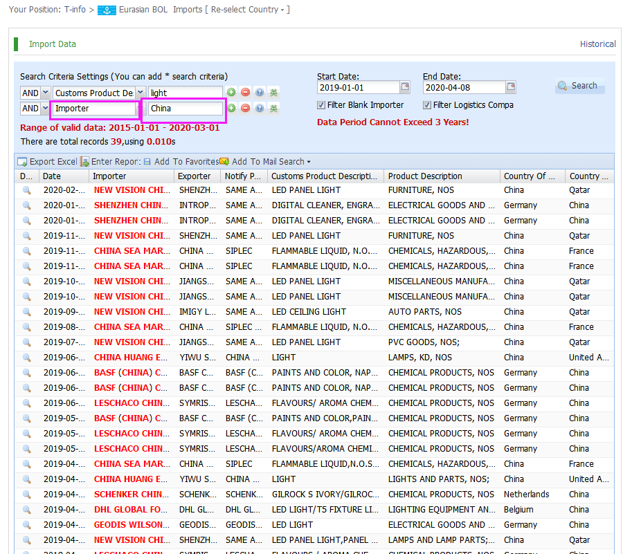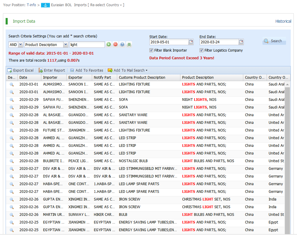 Our trade analysis system classifies billions of trade records by algorithms and data analysis to provide more than 19 professional reports, can analyze market trend,trade region,buyers,suppliers,product sales distribution,contact infos etc. Make you ahead of your competitors and know yourself more.