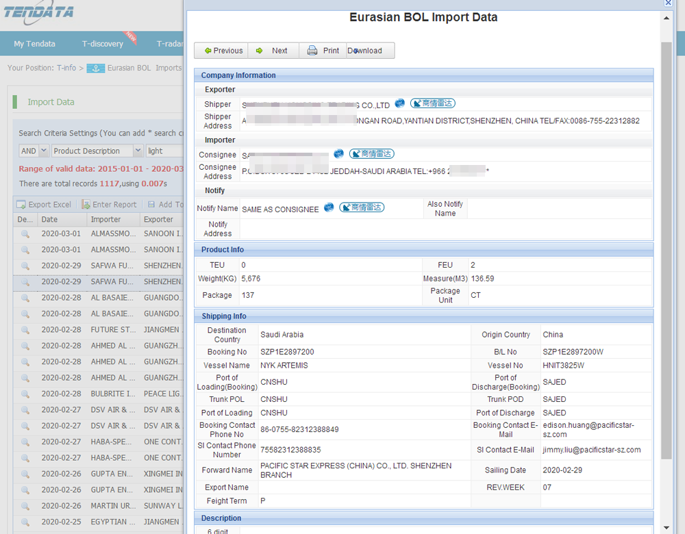 It covers – Company name,shipment Date, HS Code, HS Code Description, Quantity, Value, Origin and Destination Country, Port of Loading and Departure etc .