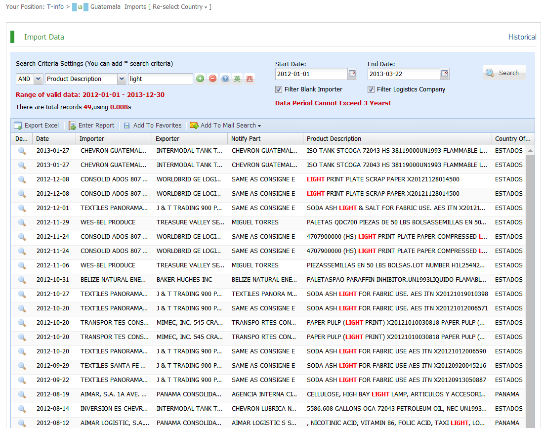 Guatemala import data actually provided by government customs, Filter by products, shipment dates, ports, country of origin,quantity,price and more.