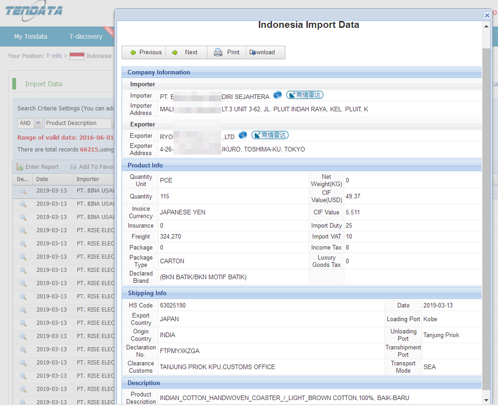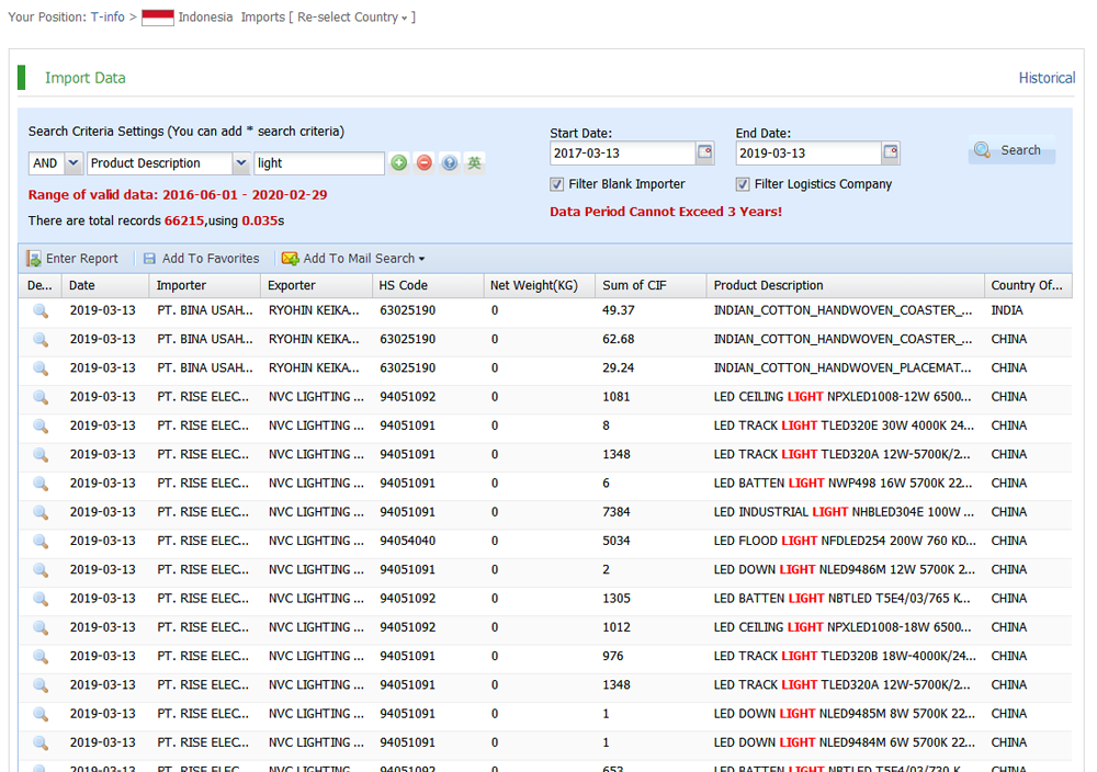 Indonesia import and export data actually provided by government customs, Filter by products, shipment dates, ports, country of origin,quantity,price and more.