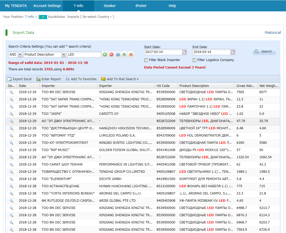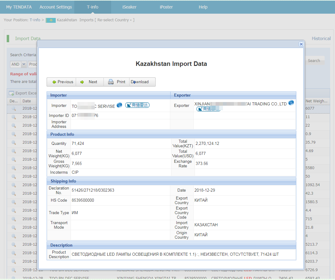 Kazakhstan import and export data actually provided by government customs, Filter by products, shipment dates, ports, country of origin,quantity,price and more.