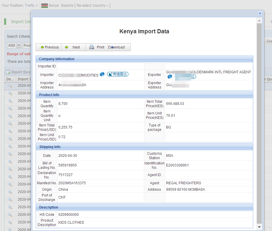 Kenya import data actually provided by government customs, Filter by products, shipment dates, ports, country of origin,quantity,price and more.