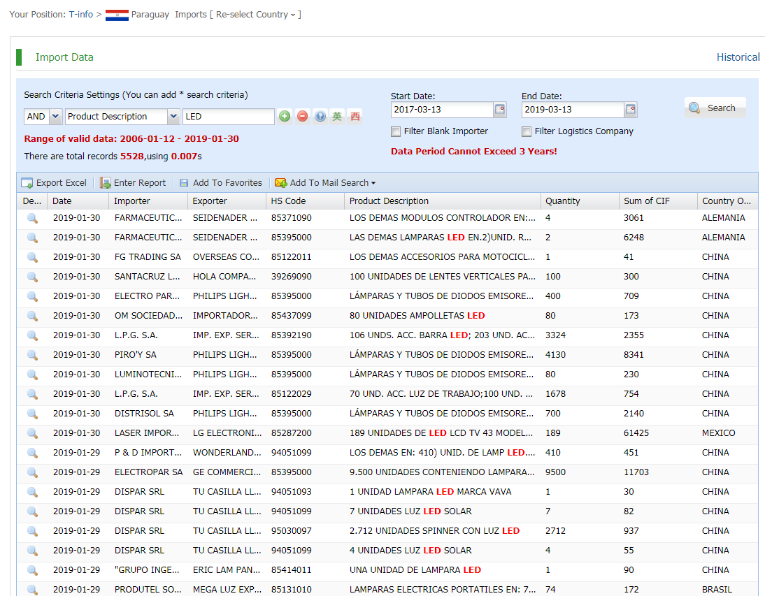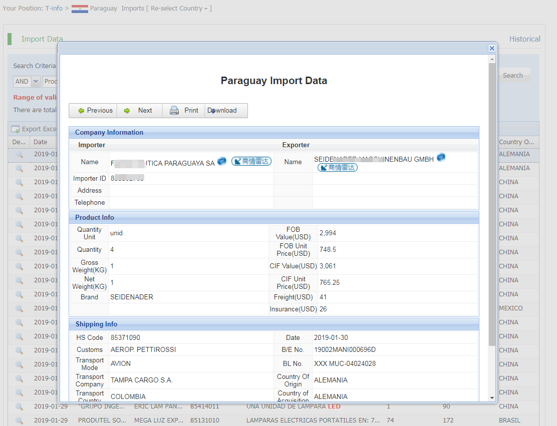 Paraguay data actually provided by government customs, Filter by products, shipment dates, ports, country of origin,quantity,price and more.